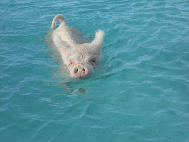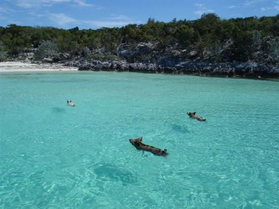 Οι επισκέπτες του μικρού ακατοίκητου νησιού Big Major Cay, στις Μπαχάμες, βρίσκονται προ εκπλήξεως όταν βλέπουν αυτά τα γουρουνάκια να απολαμβάνουν τον ήλιο και να κολουμπούν με όρεξη και επιδεξιότητα στη θάλασσα!