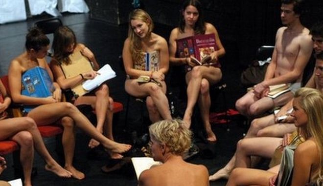 Περίπου 10 φοιτητές του τμήματος Καλών Τεχνών μαζί με την καθηγήτρια τους, πήγαν για μάθημα με ρούχα, γδuθηκαν και συνέχισαν την παράδοση.