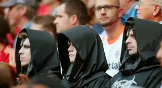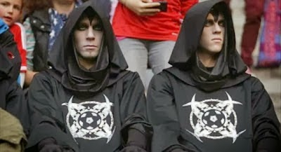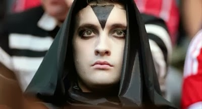 Τι δουλειά έχουν σε ένα ποδοσφαιρικό γήπεδο έντεκα τύποι ντυμένοι στα μαύρα, με «δαιμονικά» (;) σύμβολα στα ρούχα και βαμμένα λευκά πρόσωπα; Για την ώρα δεν ξέρει κανείς.