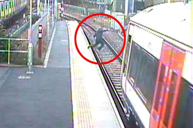Η αγωνία να ξεφύγει, πιθανότατα από αστυνομικούς, οδήγησε έναν άντρα στο παράτολμο εγχείρημα να πηδήξει στις γραμμές του τραίνου, στη Μεγάλη Βρετανία, αποφεύγοντας οριακά το συρμό.