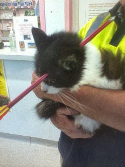 Ο τετράχρονος -τυχερός στην ατυχία του- γάτος ονόματι Μου Μου αναμένεται να αναρρώσει πλήρως, καθώς το βέλος πέρασε ξυστά -αλλά δεν ακούμπησε- τον εγκέφαλό του, και δεν προκάλεσε παραδόξως σοβαρές βλάβες...