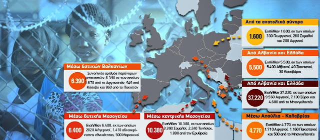 Εισήλθαν 37.220, εκ των οποίων 9.560 Αφγανοί, 7.130 Σύροι και 4.600 από το Μπανγκλαντές