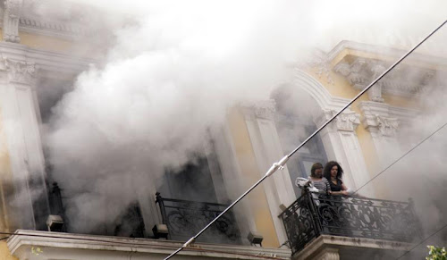 διώροφου κτιρίου, στο ισόγειο του οποίου στεγάζεται κατάστημα της ανώνυμου τραπεζικής εταιρίας με την επωνυμία MARFIN-EGNATIA BANK και ο έτερος δράστης περιέβρεξε με εύφλεκτο υγρό εσωτερικά, τμήμα της αριστερής πλευράς του ισόγειου χώρου του εν λόγω κτιρίου, ο Θ. Σ. εκσφενδόνισε εντός του κτιρίου αυτού ενεργοποιημένο αυτοσχέδιο εκρηκτικό μηχανισμό - βόμβα μολότοφ, προξενώντας έκρηξη και εντεύθεν πυρκαγιά εντός του ως άνω κτιρίου, εξαιτίας της οποίας ως μοναδικής ενεργούς αιτίας επήλθε ο θάνατος της εγκύου Αγγελικής Παπαθανασοπούλου, της Παρασκευής Ζούλια και του Επαμεινώνδα Τσάκαλη...”.