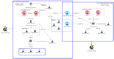 Οι δύο οργανώσεις, ακολουθούσαν ως προς τη δομή, τη λειτουργία και τη συγκρότηση τους, ιεραρχική σχέση, η οποία αποτελείται από τα ηγετικά στελέχη (αρχηγούς), τους βασικούς λειτουργικούς «βραχίονες» αγοραστές-μεταφορείς-διακινητές, καθώς και τους τελικούς αποδέκτες - πελάτες. Επιπλέον, δύο από τα βασικά στελέχη εμφανίζονται και στις δύο οργανώσεις, αποτελώντας τους συνδετικούς κρίκους.