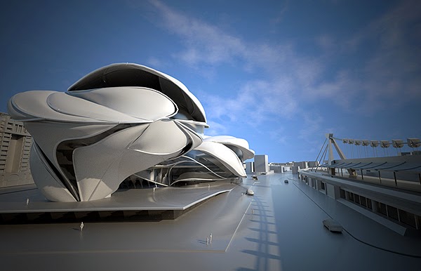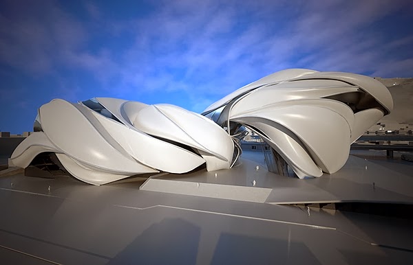 Η μορφολογία και το σχήμα του κτηρίου σχεδιάστηκε χρησιμοποιώντας ηχητικά κύματα που αναλύθηκαν και μετασχηματίστηκαν σε τρισδιάστατες απεικονίσεις. Το συγκρότημα αποτελείται από τρία επι μέρους κτήρια, το «Μεγάλο Θέατρο», το «Θέατρο» και το «Πολυμορφικό Θέατρο». Τα δύο πρώτα βρίσκονται στο βορρά ενώ το τρίτο είναι ανασηκωμένο στον αέρα.