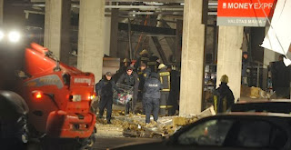 Οι πυροσβέστες και οι διασώστες συνεχίζουν τις έρευνες στα συντρίμμια του καταστήματος του οποίου η στέγη κατέρρευσε το βράδυ της Πέμπτης.