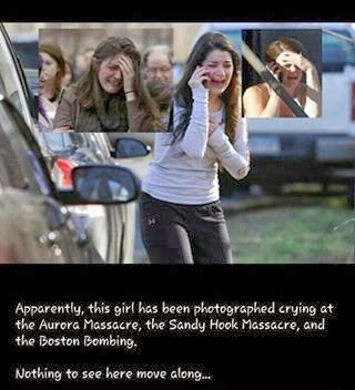 Μετά το τρομοκρατικό χτύπημα της Βοστώνης, μια εικόνα που εγείρει αρκετά ερωτήματα κυκλοφόρησε σε κάποιες ιστοσελίδες και blogs. Ειδικότερα, οι δημιουργοί της παρακάτω εικόνας υποστήριζαν πως μια κοπέλα είχε φωτογραφηθεί να κλαίει σε τρία τρομοκρατικά χτυπήματα.