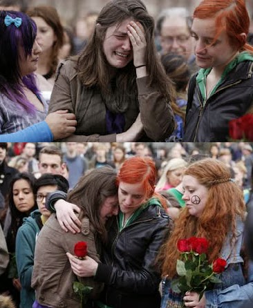 Σχετικά με τους πυροβολισμούς στο Sandy Hook, η κοπέλα της φωτογραφίας που κλαίει φαίνεται πως είναι η Carlee Soto η οποία έχασε την αδερφή της Vicky. Στην πραγματική λεζάντα εκείνης της φωτογραφίας αναφέρεται: «Η Carlee Soto μαθαίνει ότι η αδερφή της Vicky είναι νεκρή».