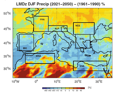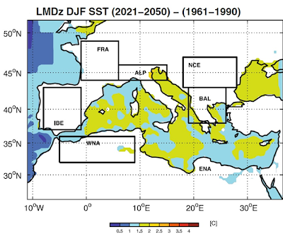 *Τα τρία πρώτα σχεδιαγράμματα του κειμένου προέρχονται από τη δημοσίευση στο έγκριτο επιστημονικό περιοδικό Climate Dynamics, που έγινε με συνεργάτες από τη Γαλλία (Ινστιτούτου Pierre και Simon Laplace- IPSL, Παρίσι) και τη Χιλή (Πανεπιστήμιο Χιλής, Σαντιάγκο) αναλύοντας περιβαλλοντικές παρατηρήσεις και προσομοιώσεις με το μέσης κλίμακας κλιματικό μοντέλο ατμόσφαιρας και θάλασσας LMDz/NEMO-MED8 του IPSL.(Rojas M., L. Z. Li , M. Kanakidou, N. Hatzianastassiou, G. Seze, H. Le Treut, Winter weather regimes over the Mediterranean region: their role for the regional climate and projected changes in the twenty-first century, Clim Dyn, DOI 10.1007/s00382-013-1823-8, 2013).