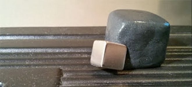 Ένα κομμάτι μαγνητικού στόκου καταπίνει ολοκληρωτικά έναν μαγνήτη σπανίων γαιών σε αργή κίνηση....