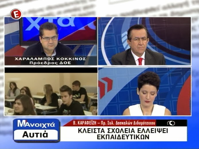 Την οδυνηρή πραγματικότητα στον χώρο της παιδείας που οδηγεί σε προσλήψεις εκπαιδευτικών μέσω... ΕΣΠΑ αποκάλυψαν ο Χαράλαμπος Κόκκινος, Πρόεδρος της ΔΟΕ και η Βάια Καραφείζη, Πρόεδρος του Συλλόγου Δασκάλων / Νηπιαγωγών Διδυμοτείχου.