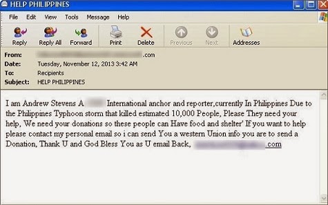 Δεδομένου του ύψους της καταστροφής στις Φιλιππίνες και την ανάγκη για βοήθεια να χρειάζεται να προχωρήσει άμεσα, η Symantec προτρέπει το κοινό να συνεχίζει να συνεισφέρει με τη στήριξη και τη βοήθεια που μπορεί να προσφέρει. Παρόλα αυτά, η εταιρεία υπενθυμίζει στο κοινό ότι πρέπει να παραμένει προσεκτικό όταν προχωρά σε online δωρεές.