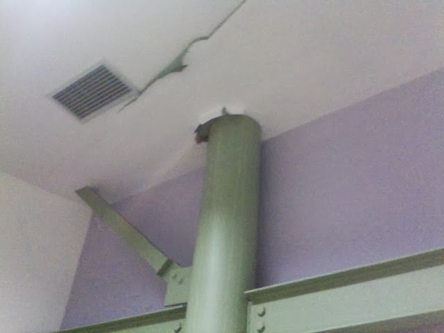 Λίγο πιο πέρα η ψευδοροφή είναι έτοιμη να καταρρεύσει θέτοντας σε κίνδυνο μαθητές και καθηγητές.