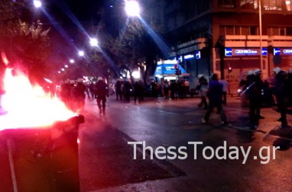 Οι αστυνομικές δυνάμεις δημιούργησαν φραγμό στην πλατεία Ηρώων, για να εμποδίσουν τους διαδηλωτές να προσεγγίσουν τα γραφεία, οι οποίοι προσπάθησαν να σπάσουν τον κλοιό με αποτέλεσμα να γίνει περιορισμένη χρήση χημικών σύμφωνα με διαδηλωτές που επικοινώνησαν με το ThessToday.
