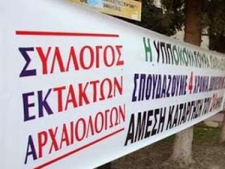 Ο Σύλλογος Εκτάκτων Αρχαιολόγων (Σ.ΕΚ.Α.) εκφράζει την συμπαράστασή του στον αγώνα των εργαζομένων μέσω...Μ.Κ.Ο. στον Τομέα του Πολιτισμού ενάντια στον εμπαιγμό της πολιτικής ηγεσίας του Υπουργείου.