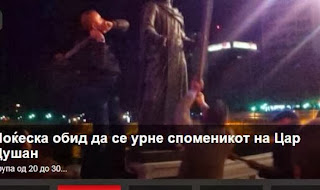 Ομάδα οργισμένων ατόμων, 20 με 30 από πρώτους υπολογισμούς, προσπάθησε χθες το βράδυ αργά να ξηλώσει το άγαλμα του Σέρβου αυτοκράτορα...
