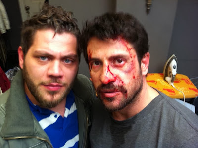 Τί έπαθε άραγε...ο Αγαπημένος μας Ηθοποιός Αλέξης Γεωργούλης;;; Ποιός τον Χτύπησε;;;...Δεν πρόκειτε για τίποτα άλλο...παρά από μια "μεταμφίεση" του Αλέξη,γ ια τα γυρίσματα της καινούριας ταινίας οι "ΜΑΡΙΟΝΕΤΕΣ"...Εδώ τον βλέπουμε μαζί με τον σκηνοθέτη Π. Καλατζής...Άντε και να σκύσει η ταινιά παιδιά!!!