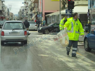 Με πετρέλαιο γέμισε ο δρόμος στην Λ. Ειρήνης στην Πρέβεζας στο ύψος του παλαιού ΚΤΕΛ πριν από λίγη ώρα.