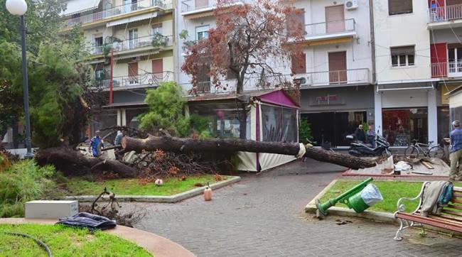 Δέντρα έπεσαν στους δρόμους, κάδοι μετακινήθηκαν και λεωφορεία εγκλωβίστηκαν.