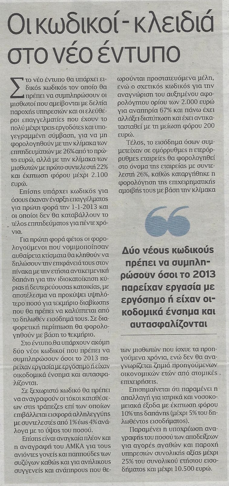 Με το νέο έντυπο φορολογίας εισοδήματος καταργούνται οι κωδικοί για: