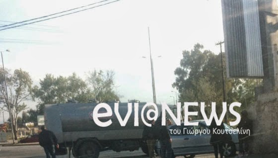 Κάτω από άγνωστες συνθήκες το βυτιοφόρο που βλέπετε, συγκρούστηκε με αυτοκίνητο. Περαστικοί πήγαν εκεί για να δουν τι συνέβη και να βοηθήσουν αν χρειαστεί. Ευτυχώς δεν χρειάστηκε μιας και οι δύο οδηγοί ήταν καλά στην υγεία τους. Στο σημείο βρέθηκε η τροχαία Χαλκίδας και ρύθμισε την κίνηση μιας και ο δρόμος που συνέβη το ατύχημα συνδέει την Χαλκίδα με την Νότια και την Βόρεια Εύβοια.