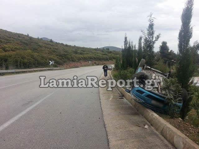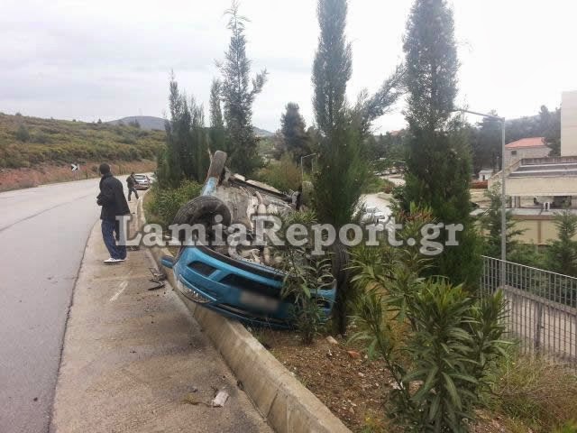 Ο οδηγός έχασε τον έλεγχο και το αυτοκίνητο βρέθηκε εκτός δρόμου όπως βλέπετε και στις φωτογραφίες του LamiaReport.