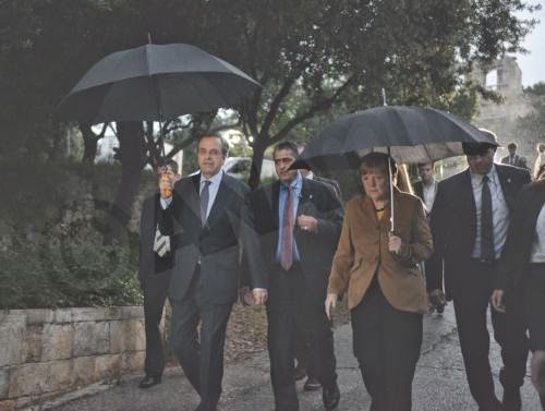 Μετά την συνάντησή τους στο Μέγαρο Μαξίμου και την συνέντευξη Τύπου που ακολούθησε, ο κ. Σαμαράς και η κυρία Μέρκελ περπάτησαν στην Πλάκα και συνομίλησαν με κατοίκους της Αθήνας μπροστά σε κατάστημα τουριστικών ειδών.