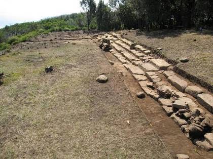 Βρεθήκαμε έκπληκτοι μπροστά σε ένα στάδιο με λίθινες κερκίδες. Την αφετηρία του σταδίου σχηματίζει μια σειρά από λίθινες πλάκες, πάνω στις οποίες διακρίνεται καθαρά η βαλβίδα, μονή στην περίπτωσή μας με μια αύλακα, που πιθανότατα μας παραπέμπει στον 5ο αιώνα π.Χ.