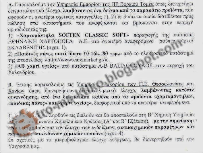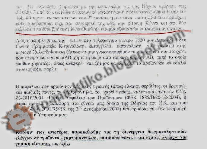 Δειγματοληπτικούς ελέγχους ζητά το Υπουργείο Ανάπτυξης μετά από σοβαρότατες καταγγελίες καταναλωτών για κατσαρίδες, ζωντανές και νεκρές που βρέθηκαν σε παιδικές πάνες, καθώς όμως...και σε καταγγελίες για απόκτηση μυκήτων μετά από κατανάλωση χαρτιών τουαλέτας και χαρτομάντηλων που αγοράστηκαν από μεγάλες αλυσίδες σούπερ μάρκετ της χώρας μας. Συγκεκριμένα η καταγγελία:
