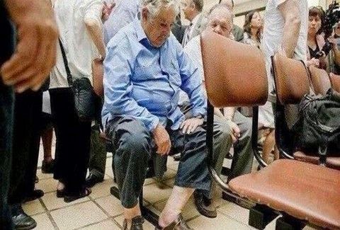 Μια πολύ πρόσφατη φωτογραφία που έχει κάνει το γύρο του διαδικτύου, τον δείχνει να περιμένει στωικά στον προθάλαμο ενός δημόσιου νοσοκομείου, να έρθει η σειρά του για να εξεταστεί από τους γιατρούς. Ούτε σωματοφύλακες, ούτε να πάρει τη θέση των υπόλοιπων ασθενών, ούτε με αμφίεση που περιλαμβάνει κοστούμι, γραβατα και... πόζα. Με απλό, φτωχικό ντύσιμο και σανδάλια ο Μουχίκα καταβεβλημένος και με σκυμμένο το κεφάλι, περιμένει τη σειρά του, ενώ οι διπλανοί του φαίνεται να τον αντιμετωπίζουν σαν έναν... κανονικό παππού που αντιμετωπίζει κάποιο πρόβλημα υγείας.