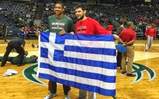 Οι δυο τους, περήφανοι, πριν το τζάμπολ του αγώνα, πόζαραν με την ελληνική σημαία ανά χείρας κι αν μη τι άλλο διαφήμισαν τη χώρα μας (ξανά) και το ελληνικό μπάσκετ σ 'όλο τον κόσμο.