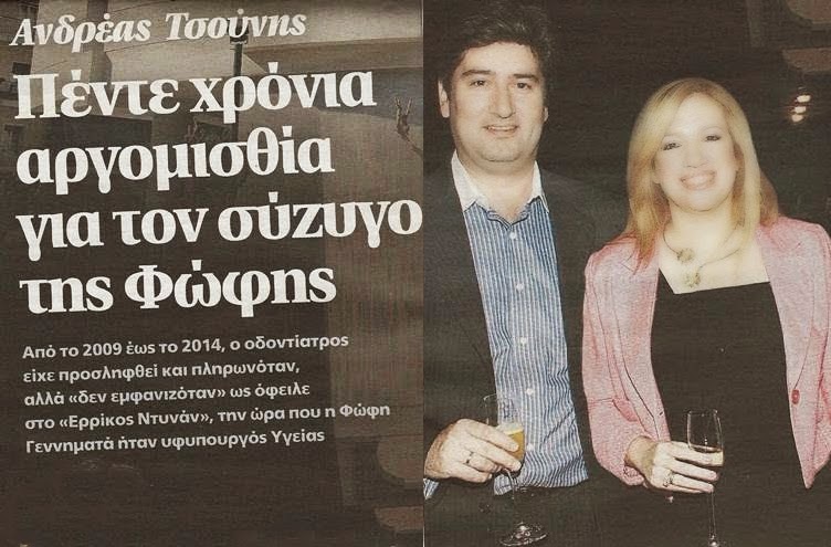 Στην προκειμένη περίπτωση αναφερόμαστε στον σύζυγο της πρώην υφυπουργού υγείας και σημερινής αναπληρώτριας υπουργού Εθνικής Αμυνας, Φώφης Γεννηματά, Ανδρέα Τσούνη.