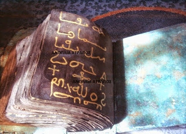 Βρήκαν σε μια φυσική κόγχη τυλιγμένο σε δέρμα ζώου ένα βιβλίο το όποιο όταν άνοιξαν είδαν ότι είναι ένα «μαύρο» Ευαγγέλιο με σελίδες επεξεργασμένου δέρματος και αντί μελάνι φαίνεται να είναι ένα υλικό που παραπέμπει σε χαλκό η χρυσό.