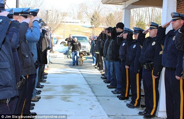 Κανείς ωστόσο δεν περίμενε την αντίδραση των αστυνομικών του τμήματος του Νιού Τζέρσει. Φορώντας τις επίσημες στολές τους, πήραν θέση στον διάδρομο του κτηνίατρου για να αποδώσουν τιμές στον τετράποδο σύντροφο τους και να τον χαιρετήσουν καθώς ήταν έτοιμος να εκπληρώσει την τελευταία του αποστολή.