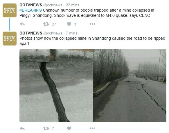 Στα έγκατα της Γης φαίνεται να έχουν παγιδευτεί πολλοί ανθρακωρύχοι μετά... την κατάρρευση ορυχείου στην περιοχή Shandong της Κίνας. Η κατάρρευση ήταν τόσο ισχυρή που, όπως μεταδίδουν κινεζικά μέσα ενημέρωσης, έμοιαζε με σεισμό μεγέθους τεσσάρων Ρίχτερ!
